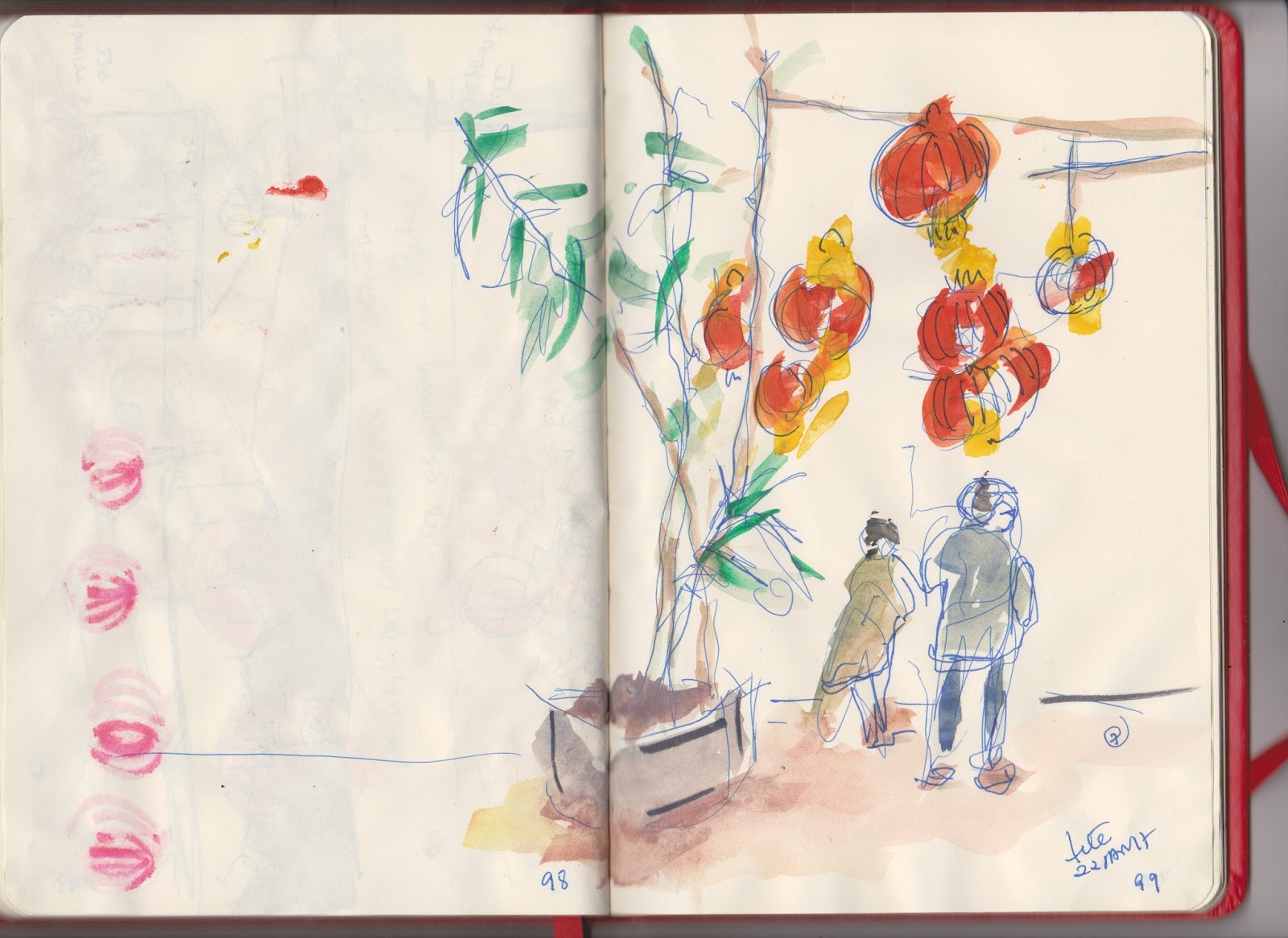 Confesso a minha pouca vontade para desenhar, mas quando me sentei num banco de jardim, abrigada dos chuviscos debaixo de algumas árvores, não resisti a esta cena no Miradouro de São Bento, em Santarém. Elas estavam mesmo muito empenhadas e entusiasmadas a desenhar a paisagem da ponte, do rio e de várias igrejas que se viam lá de cima, mesmo debaixo de chuva!